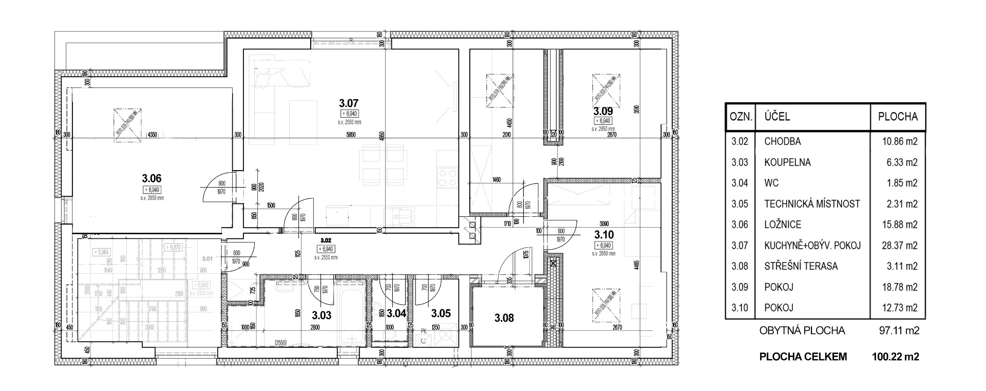 Plocha celkem: 100.22 m2